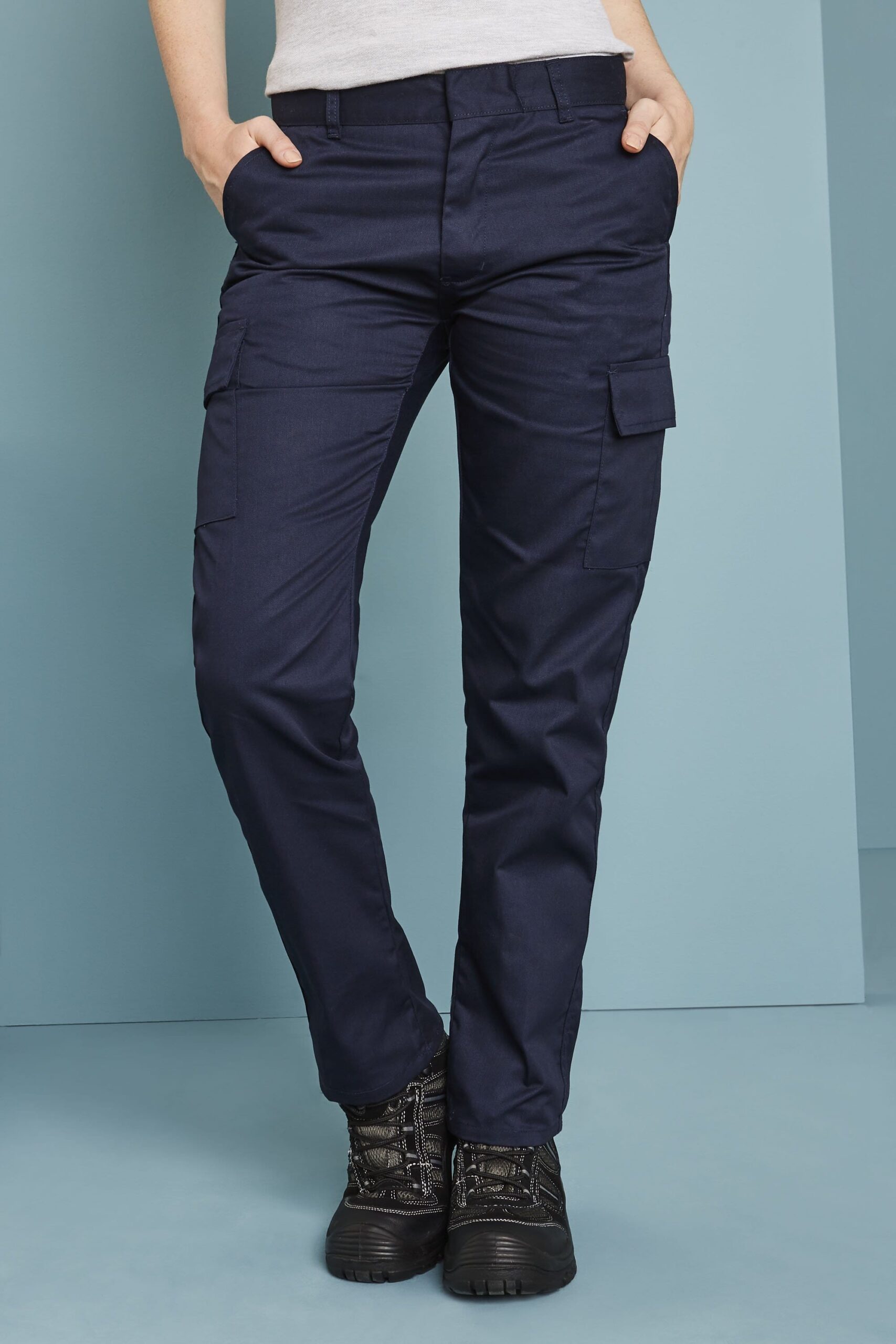 This women’s slim fit stretch cargo is the perfect uniform solution, offering a contemporary slim fit in a dynamic cotton stretch twill fabric. The stretch fabric provides the ultimate in comfort and freedom of movement. Features include side pockets, a rear buttoned jetted pocket and a hook and bar waist fastening. Highly durable with twin stitching throughout and bar-tacked at all stress points.